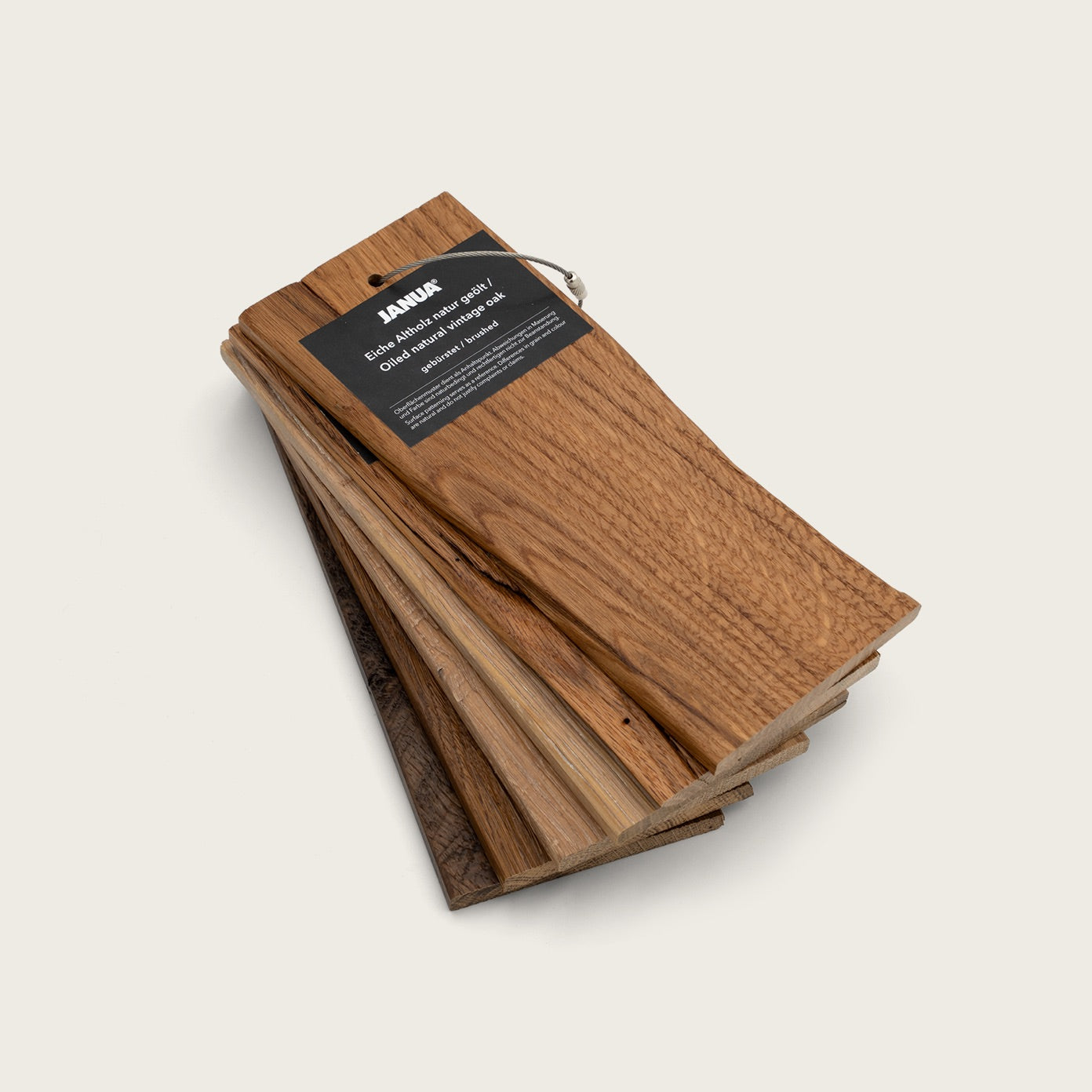 Die JANUA Musterbox – Edition Altholz bringt die natürliche Wärme und Charaktertiefe unserer Hölzer direkt zu Ihnen nach Hause. Mit dieser sorgfältig zusammengestellten Auswahl authentischer Materialmuster können Sie die JANUA Qualität nicht nur sehen – sondern fühlen. Jede Oberfläche erzählt ihre eigene Geschichte und hilft Ihnen dabei, die perfekte Entscheidung für Ihr Möbel zu treffen.